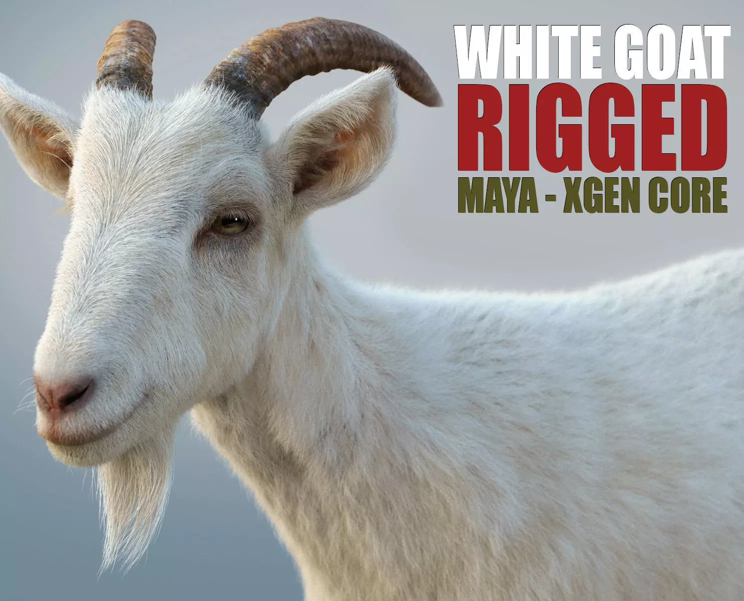 High Detailed Photorealistic White Goat, Rigged version – made with Maya. Xgen (CORE) for grooming.