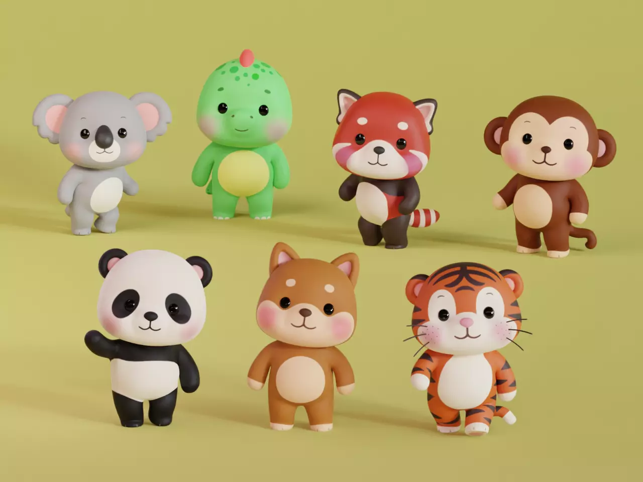Preview renders and video were made with Subdivision Level 0 and Level 2. You can also check out a preview video of another Chibi Animal — it uses the same animations as this character. The animation of custom bones is for preview video only and is not included in the actual FBX and Blend files.
