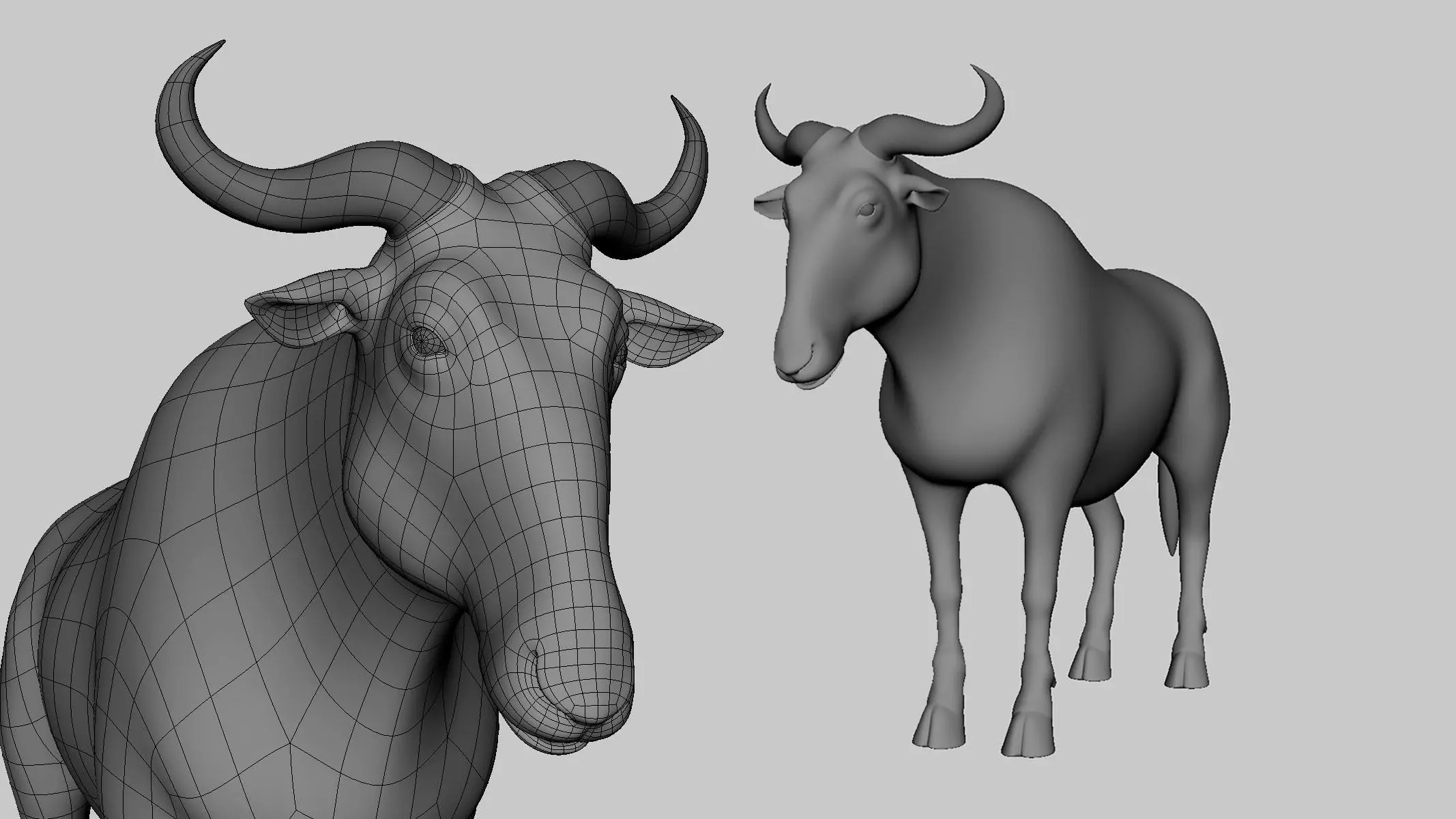 Wildebeest model done with proper mesh flow, Uvs unwrap is also done with no overlapping.