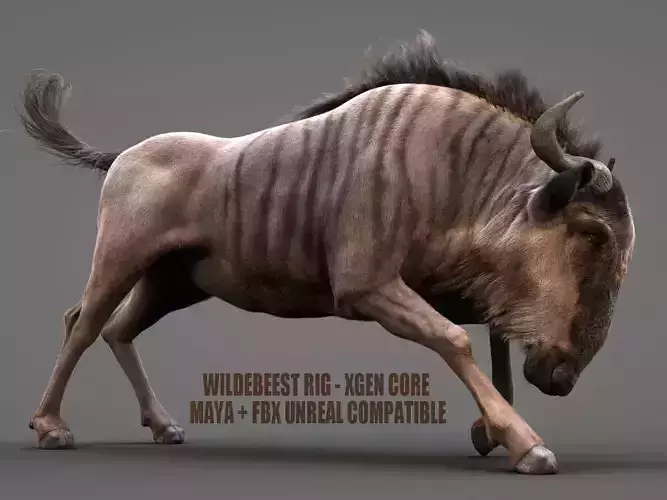 High Detailed Photorealistic Wildebeest FULLY RIGGED completely UVmapped and textured.