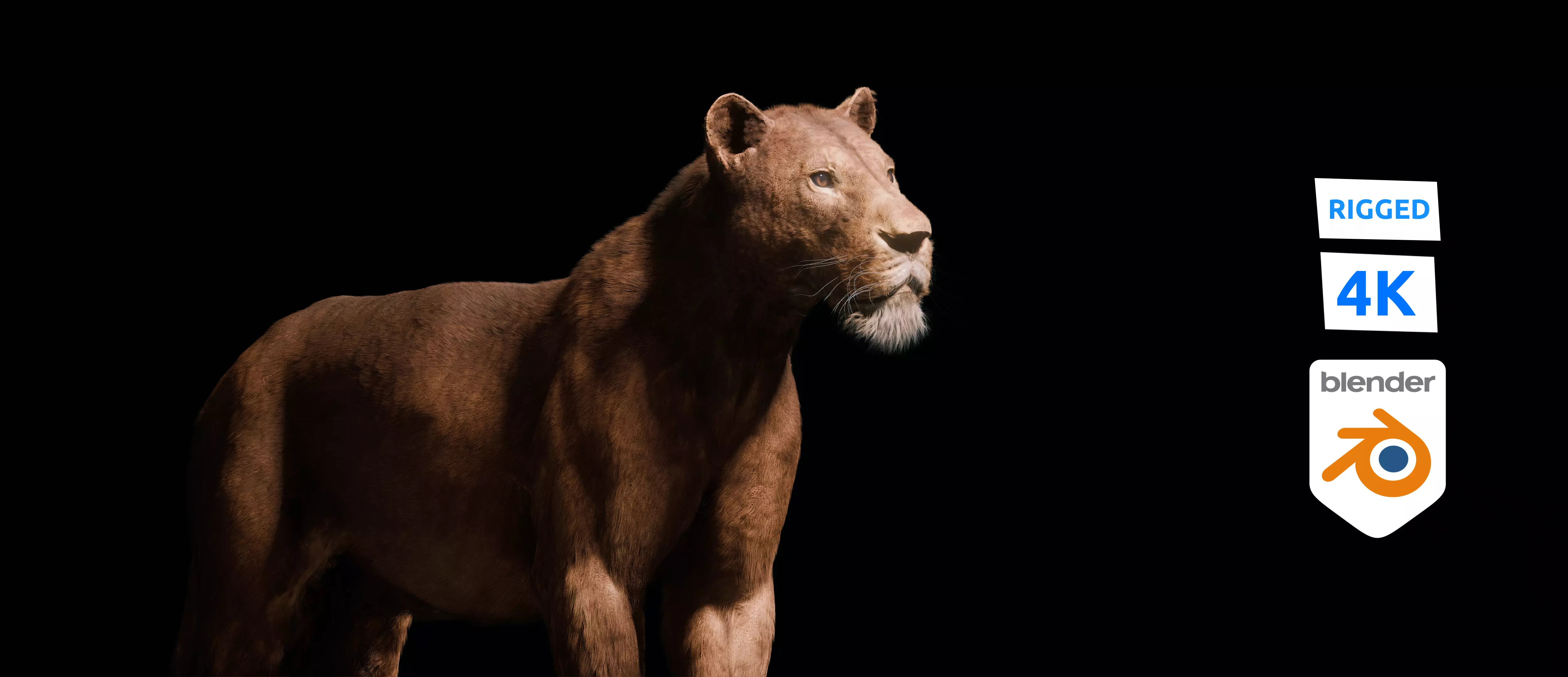 This is a Photorealistic Detailed 3d young Lion, with fur made for blender with 4K textures. The lion model is a Rigged 3D model with controllers, made in Blender with hair particles.This model includes a .fbx and a .obj file as well.