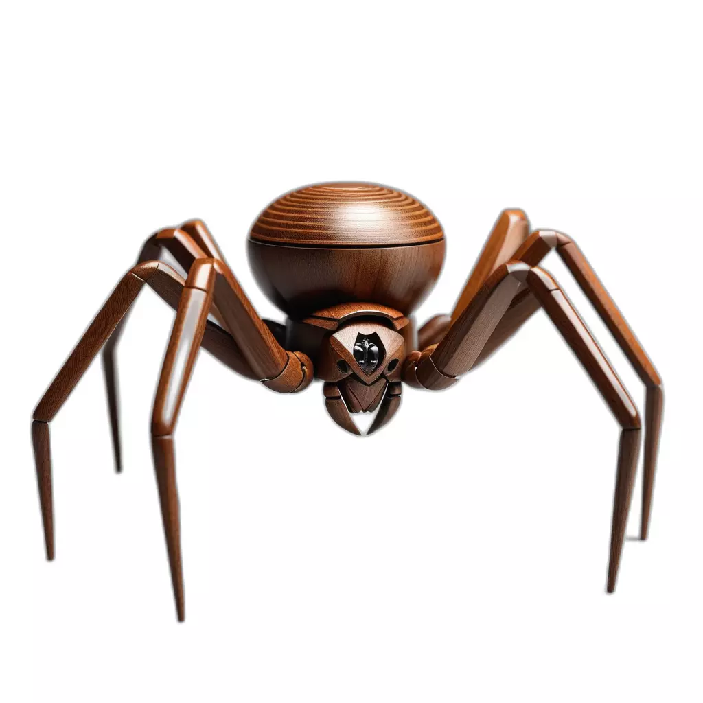 This is a beautifully crafted 3D model of a stylized spider, designed with a distinct wooden aesthetic. The intricate details showcase a rich, polished wood texture, giving it a unique artistic and decorative appeal. The model features a segmented body and legs, with a particularly striking abdomen characterized by concentric ring patterns, reminiscent of finely turned wood. Its sleek and modern design makes it a versatile asset for various digital projects. Possible usage scenarios include enhancing digital art compositions, serving as an intriguing decorative prop in architectural visualization scenes, or integrating into games, particularly those with a fantasy, steampunk, or whimsical theme. It's also ideal for augmented reality (AR) and virtual reality (VR) applications, where its unique design can stand out. Furthermore, its solid, artistic form makes it an excellent candidate for 3D printing, allowing for the creation of unique physical collectibles or art pieces. The model is optimized for high-quality rendering, suitable for both static high-resolution renders and potentially real-time applications, depending on the specific poly count and engine requirements. It is provided with clean topology, ensuring smooth deformations and easy integration into any 3D pipeline. Assuming standard marketplace practices, it comes fully UV unwrapped with high-resolution PBR textures to deliver realistic material properties. Supported file formats likely include GLB, OBJ, FBX, USD, DAE, and STL for 3D printing purposes, offering broad compatibility.