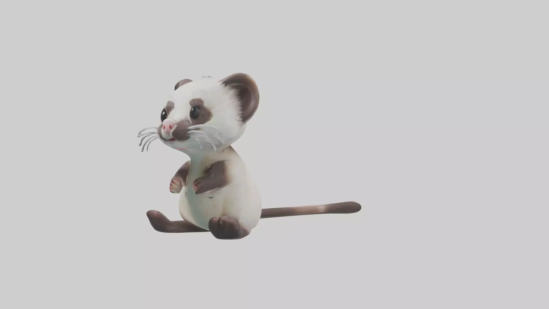 baby ferret, 3D model, wildlife, animal, educational, nature, realistic textures, detailed design, game asset, low-poly