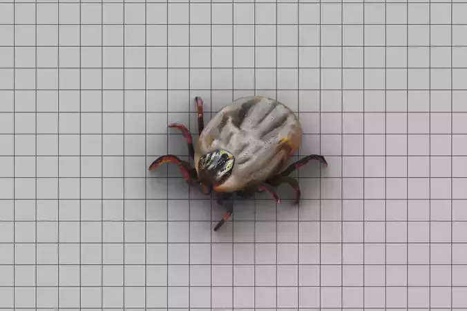 This 3D low-poly model of a tick is a simplified and detailed representation of the parasitic insect. It features the characteristic segmented body and legs, making it suitable for various digital applications such as education, animation, and video games. The model's low-poly nature ensures efficient rendering and performance while maintaining visual clarity and accuracy.