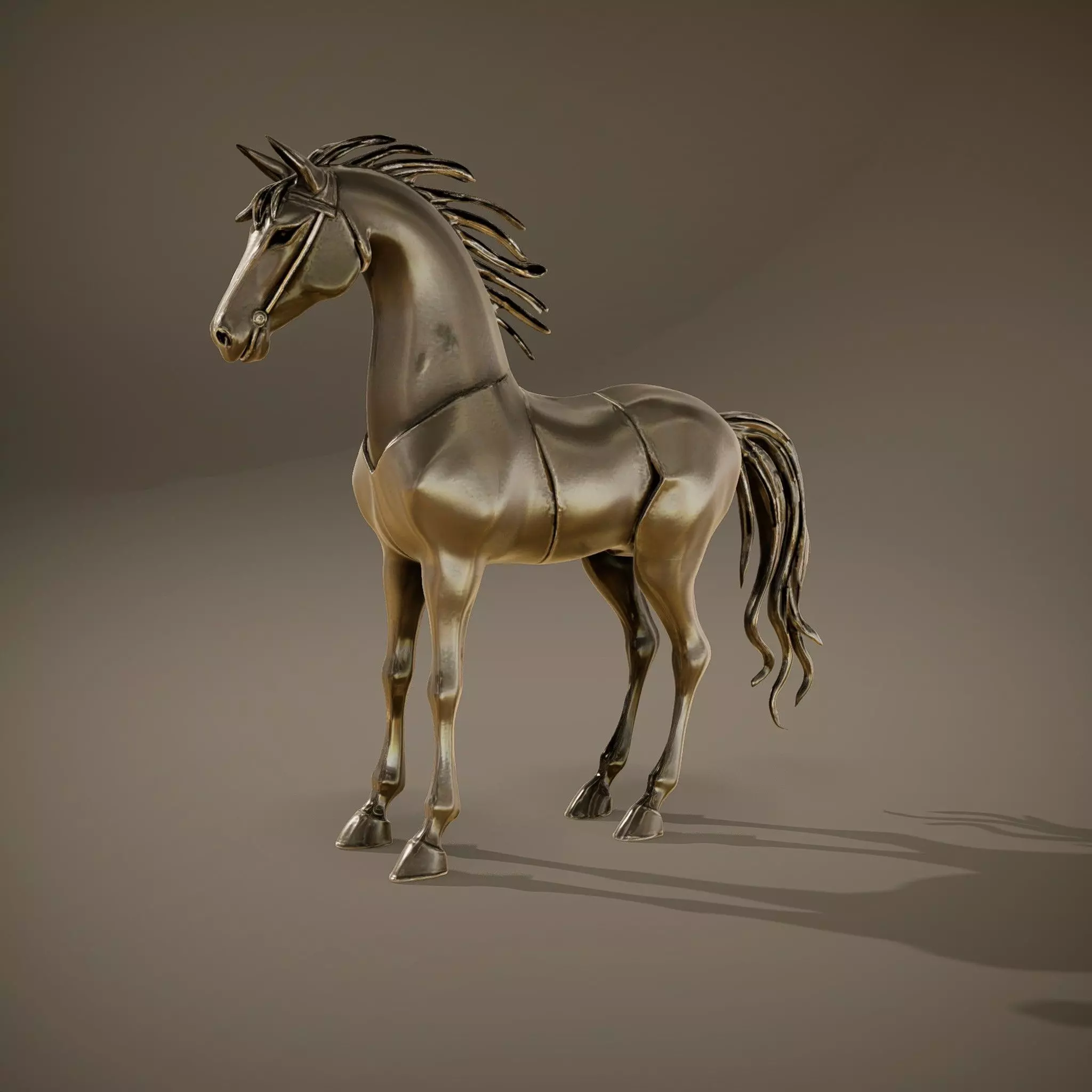 The Bronze Stallion Sculpture model pack offers a stunning 3D model of a horse crafted in a sleek metallic finish. Ideal for use in animations, architectural visualizations, or games, this model showcases intricate detailing and elegant proportions. Each model has 3 levels of detail: low-poly (1000 triangles for mobile), middle-poly (10,000 triangles for environment), and high-poly (100,000 triangles), which allows for the use of this model in production rendering (such as 3ds Max, Maya, Cinema4D, Blender, Vray/Corona/Cycles, and all other), game engines (Unity and Unreal compatible), and interactive presentations, providing a choice of detail based on the LOD System principle. With PBR textures, Diffuse, NormalMap, and reflection/roughness/metallic, the model ensures high compatibility with modern rendering engines. All models are accurately unwrapped with no overlapping UVs. Perfect for settings such as art galleries, historical documentaries, or virtual museums. All textures are 4096*4096 in size. If you find this model appealing, please like and leave a comment.