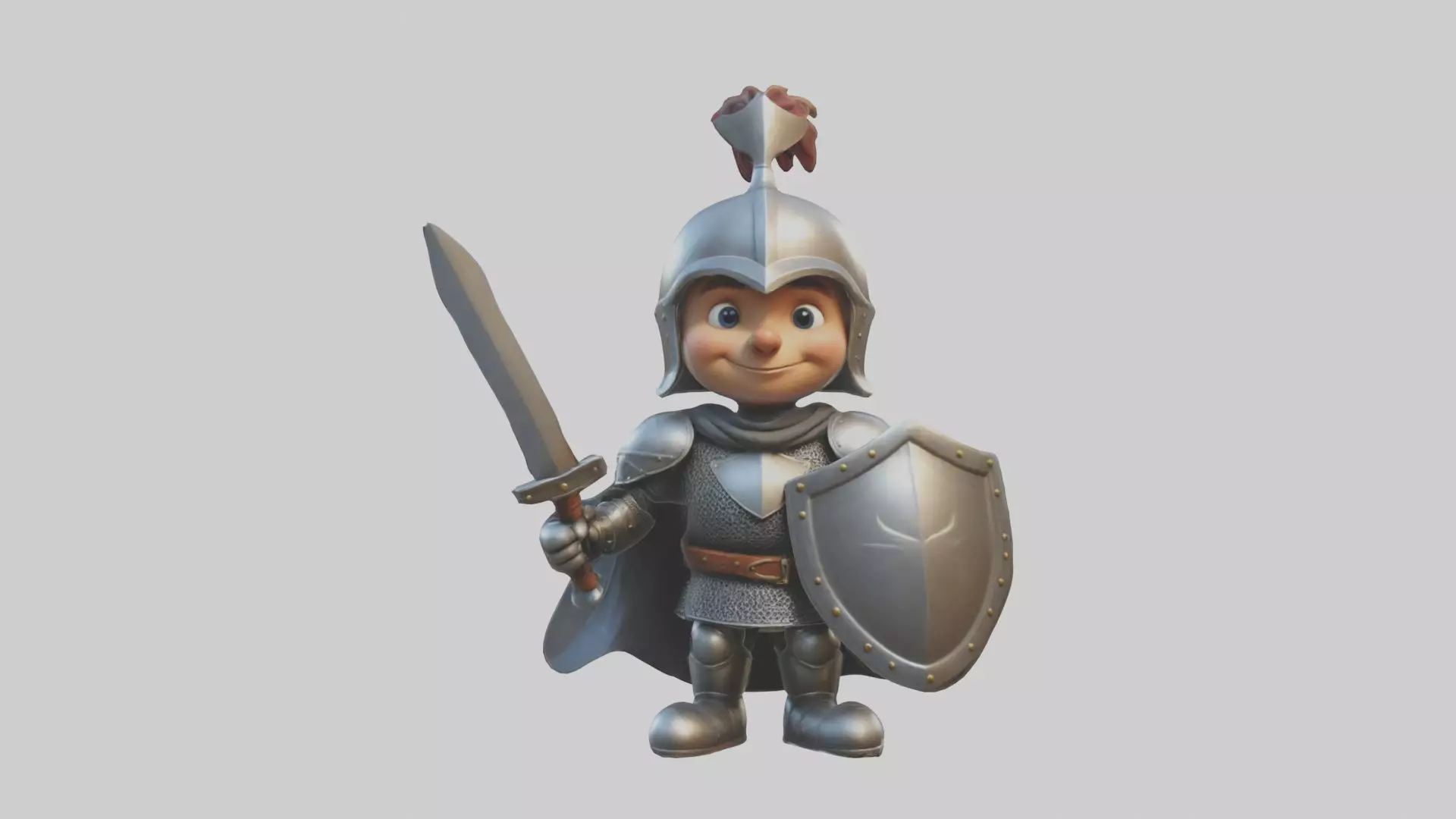 Cartoon knight, 3D model, medieval knight, armor, sword, shield, whimsical, fun, hero, fantasy, stylized, cartoonish, bright colors, game, animation