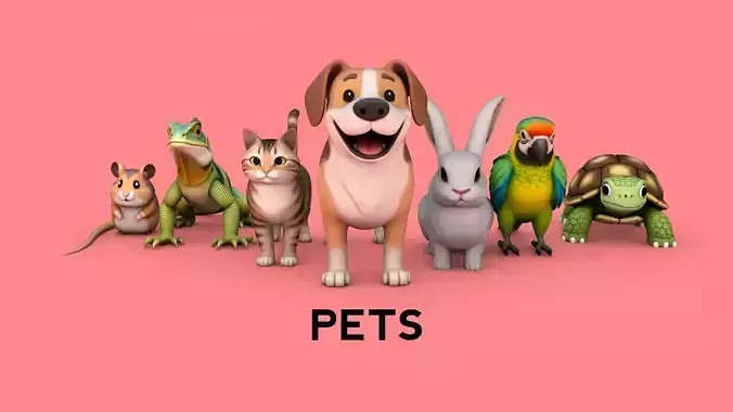 A pack of 7 pets. Low-Poly. OBJ and FBX files with textures included. Perfect for printing