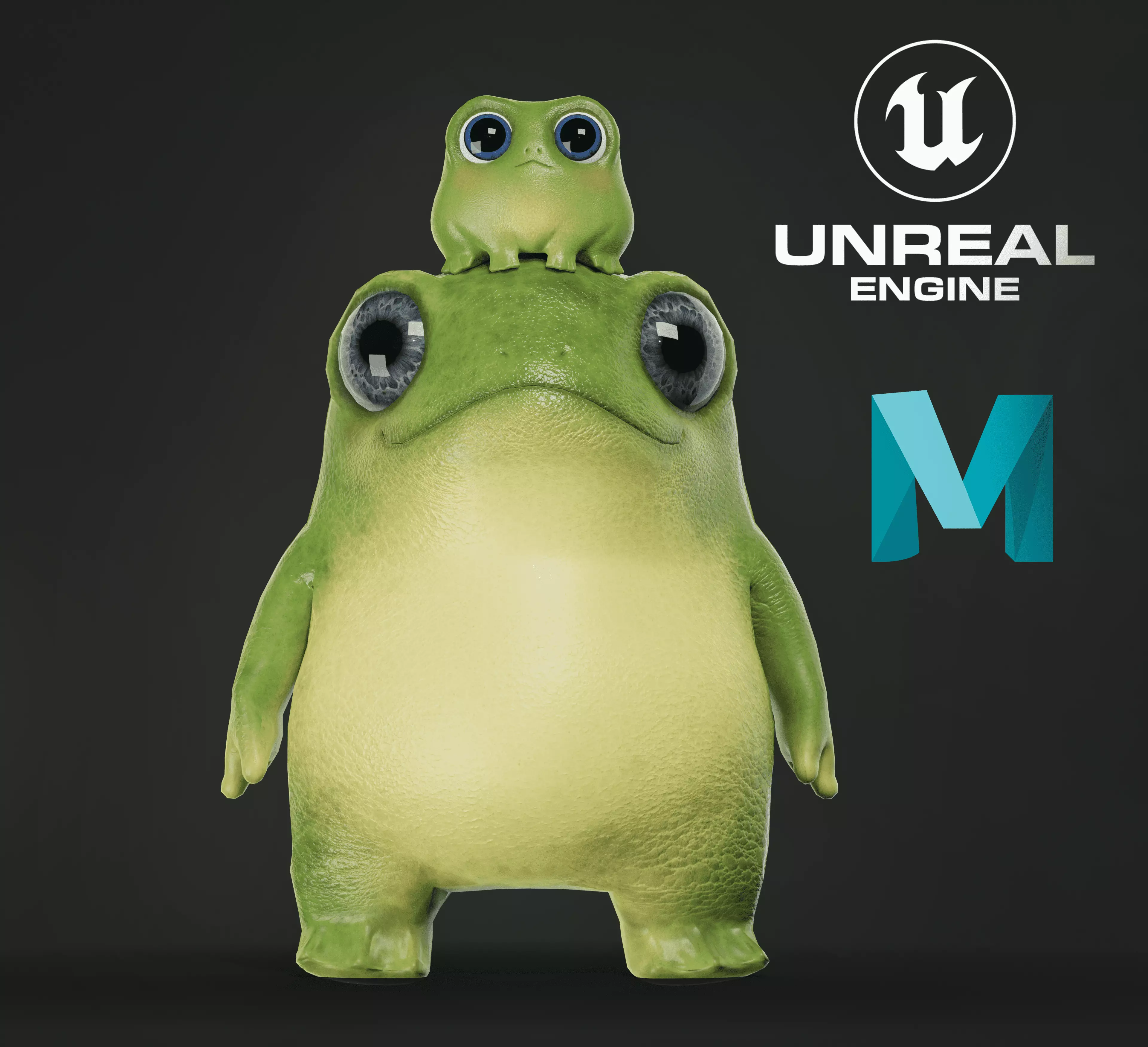 3D model of cute Frog and little frog. She will be a perfect companion for the game!
