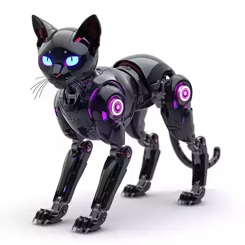 Tagscyberpunk, robot, cat, feline, robotic, neon, stealth, sci-fi, futuristic, mechanical, 3d model, animal, mecha, black metal, glow