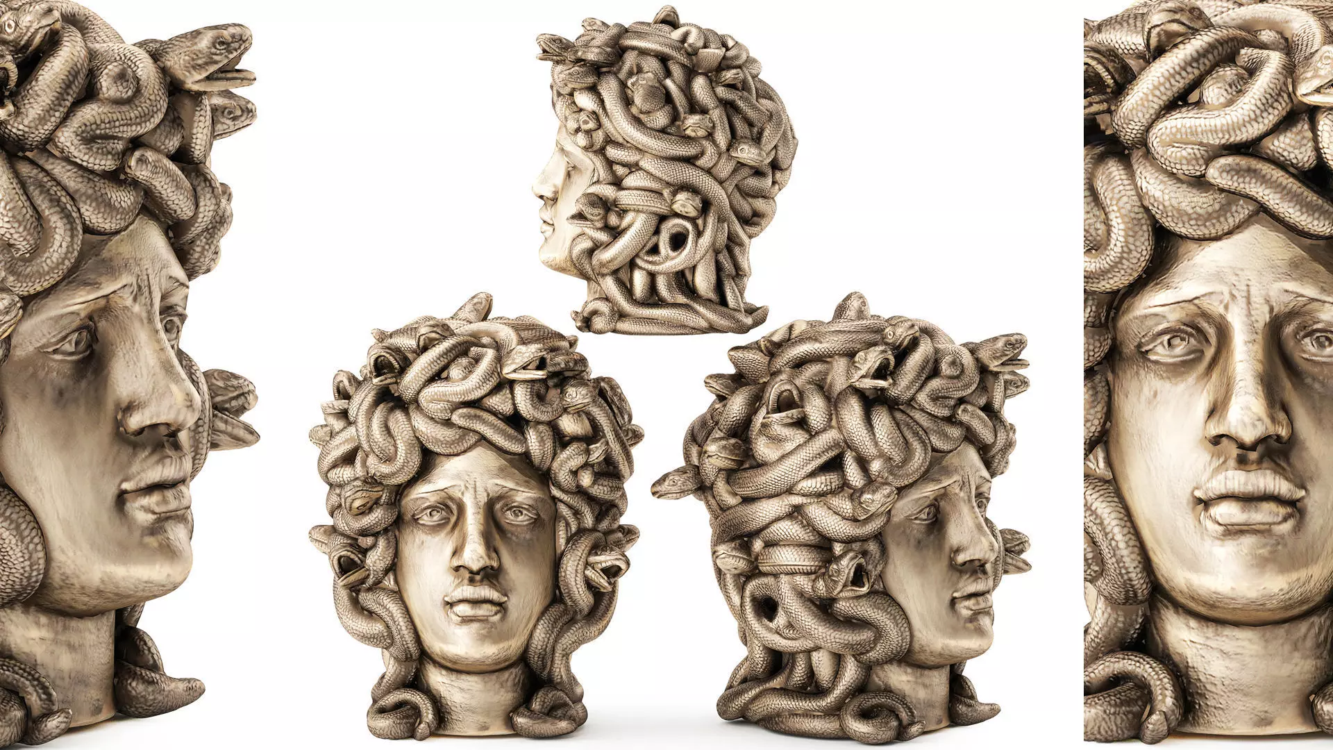 figurine, Gorgon Medusa, Medusa, Gorgon Medusa, snakes, bust, head, Gorgon, statue, figurine, table decor, decorative figurine, monochrome, solid color, realistic, modern, snake, snakes, heads, metal decor, monster, hero, fairy tale, myth, gods, god, antique, statue, decorative decor, new, top, kare design, kare