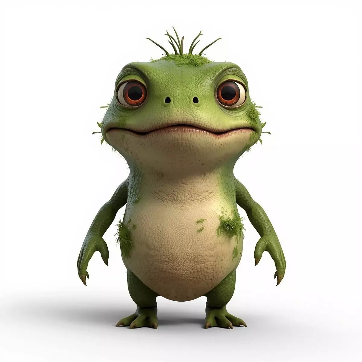 Tagsswamp creature, 3D character model, friendly monster, game-ready asset, rigged character, PBR skin textures, mossy creature, VR/AR optimized, semi-realistic, marshland guardian