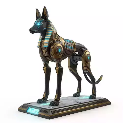 Tagscyberpunk anubis, 3D sci-fi statue, robotic jackal, neon hieroglyphs, metallic armor, game-ready character, PBR textures, futuristic egypt, VR/AR optimized, cybernetic model