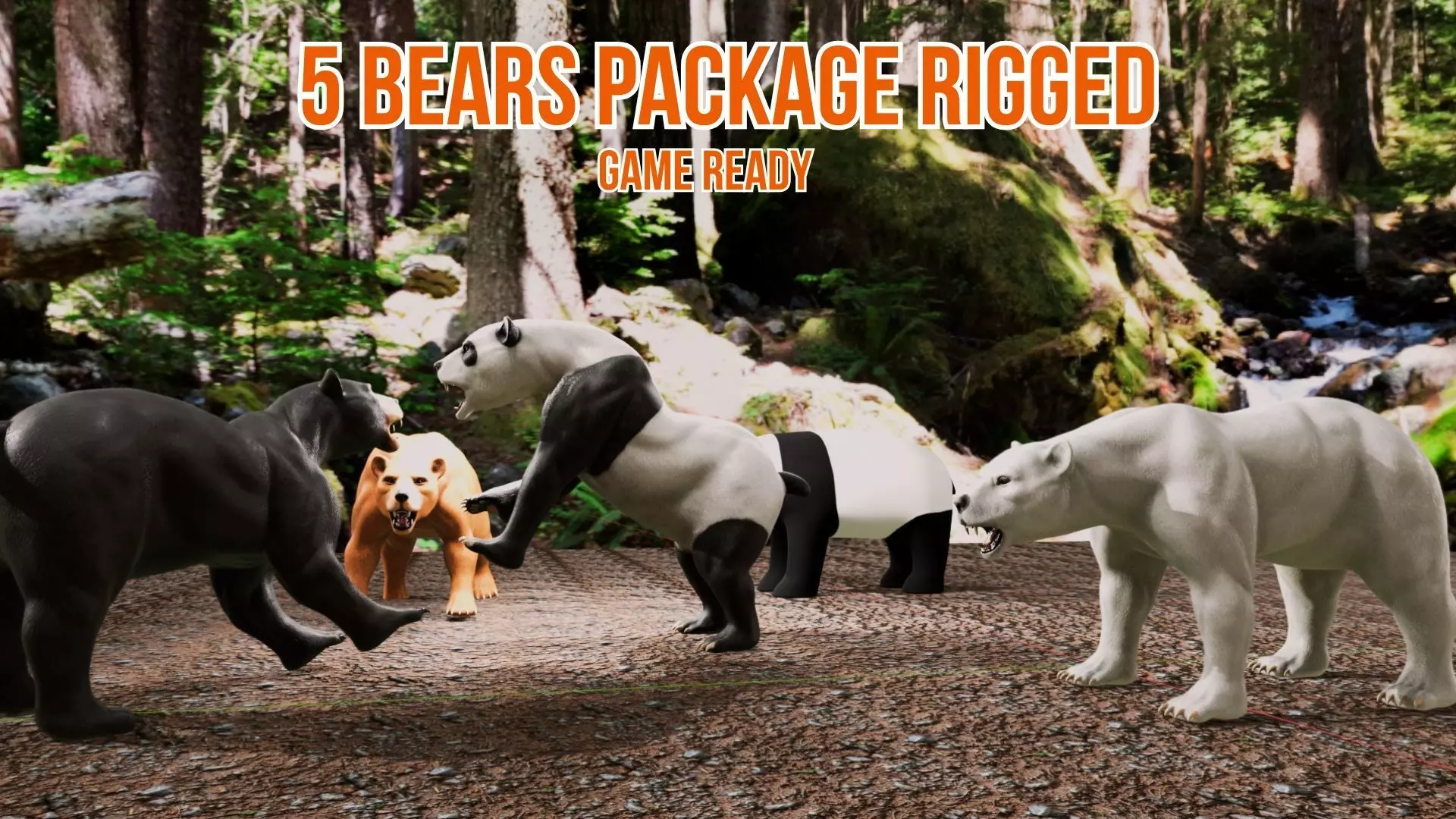 5 high-quality rigged bear models (Panda, Polar, Brown, Black)