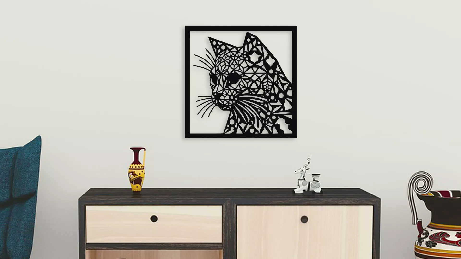 Geometric Cat Wall Art 3D model