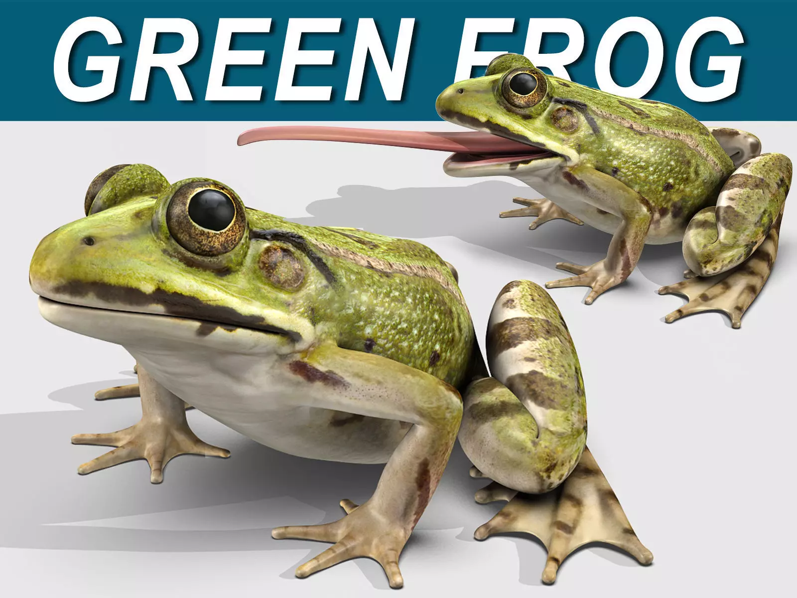 Photorealistic Green Frog( Rigged to do all kinds of actions like jumping, swimming and tongue extension to catch insects. )