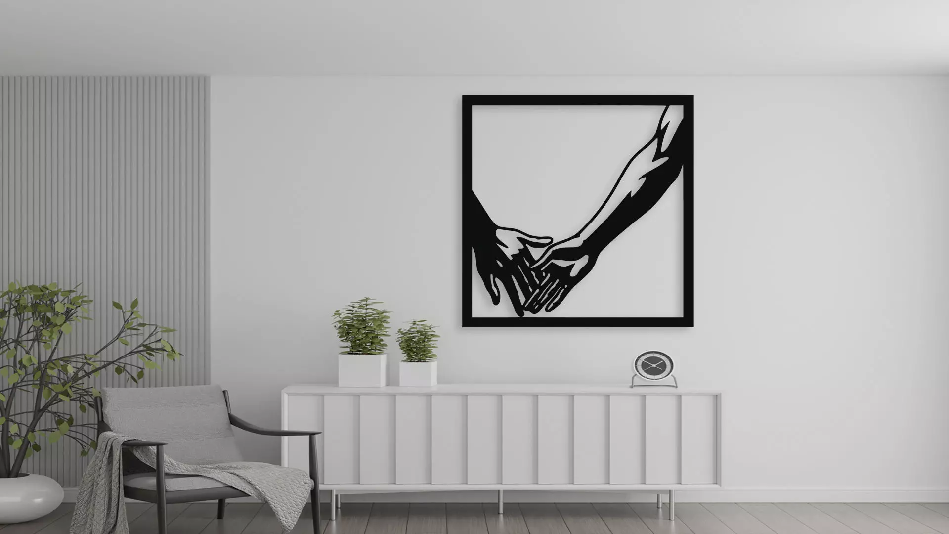 Capture the timeless symbol of love, unity, and connection with this elegant Holding Hands Wall Art. This beautifully designed piece depicts two hands intertwined, representing partnership, support, and affection. It serves as a perfect decorative item for any room, adding a touch of warmth and emotion to your home decor. Ideal as a meaningful gift for weddings, anniversaries, Valentine's Day, or simply as a celebration of a special bond. This file is perfect for 3d printing, laser engraving and cutting, wood carving, vinyl cutting, t-shirts, clothing, stickers, cardbox... You will receive these design in 10 file formats: STL, STEP, OBJ, AMF, SVG, DXF, AI, PDF, PNG, EPS
