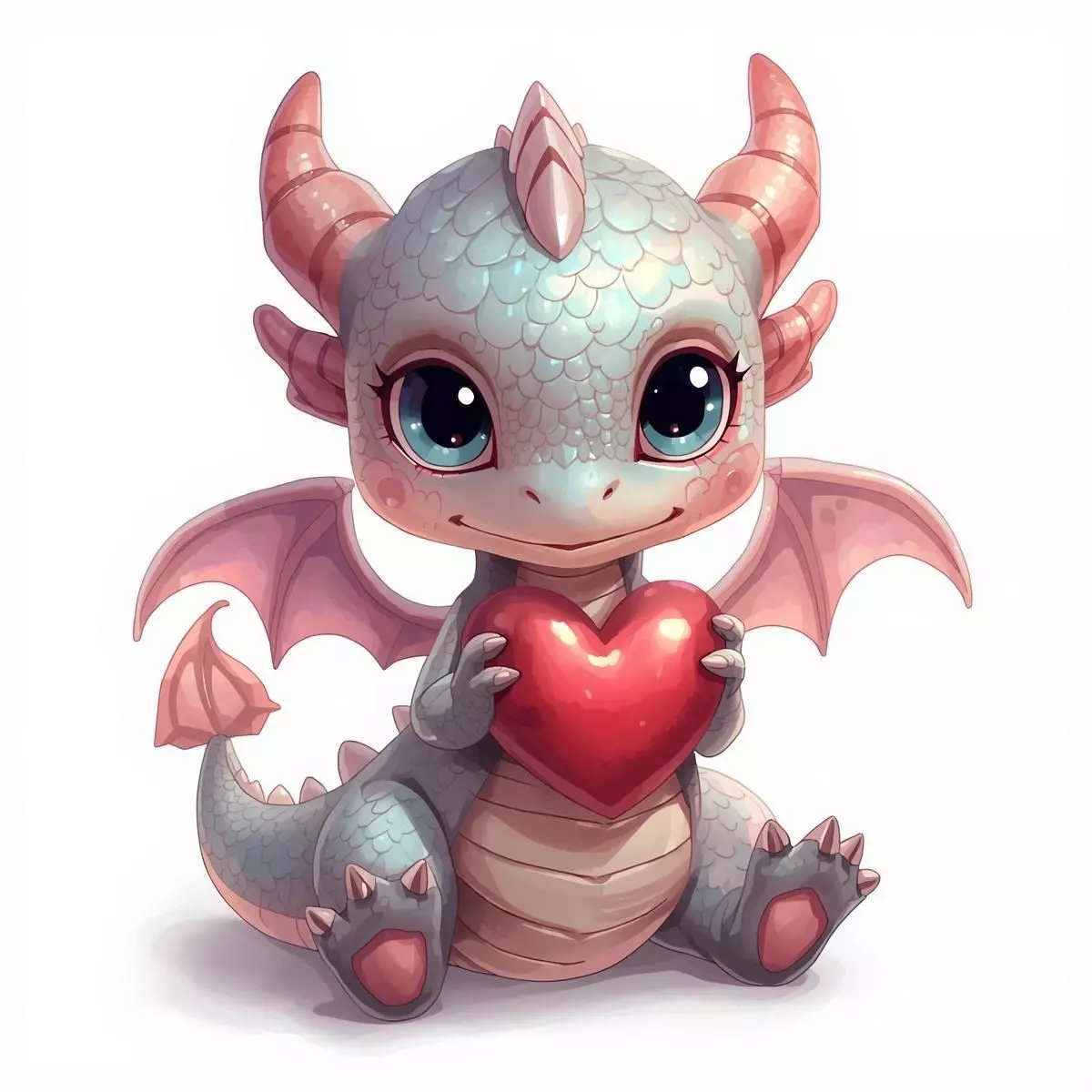 Tags3d model kawaii dragon romantic character game ready asset red heart teal scales cute mythical creature valentine's day theme high detail pink wings expressive eyes isolated character pbr materials digital collectible gift style