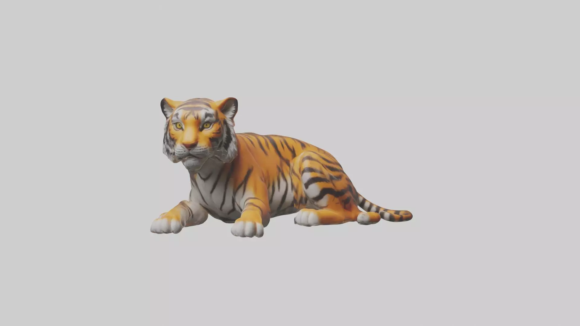 lying tiger, wildlife model, resting tiger, realistic 3D animal, apex predator, tiger anatomy, 3D wildlife scene, detailed tiger model, textured animal model, striped fur, powerful animal, 3D tiger art, high-poly tiger, lifelike wildlife model, big cat model