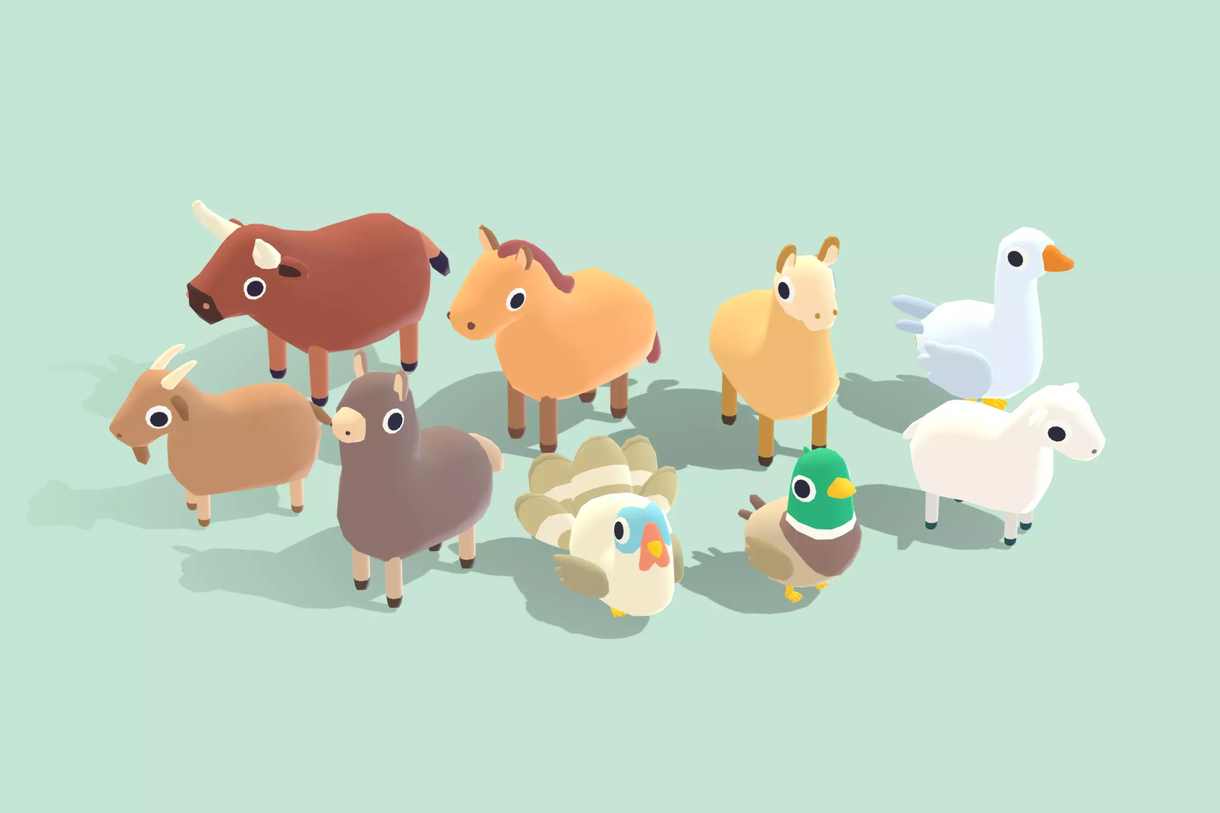 Alpaca, Bull, Goat, Goose, Horse, Lamb, Llama, Mallard, Turkey