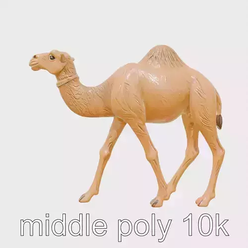 This realistic camel model offers 3 levels of detail: low-poly, middle-poly, and high-poly, perfect for production rendering in 3ds Max, Maya, Cinema4D, Blender, Vray/Corona/Cycles, game engines like Unity and Unreal, and interactive presentations. Ideal for games, educational simulations, and virtual reality experiences focused on desert ecosystems. The model features PBR, Diffuse, NormalMap, and reflection/roughness/metallic textures, fitting for any modern rendering engine. All UVs are accurately unwrapped with no overlaps. Textures are 4096*4096. Please like and comment if you enjoyed this model.
