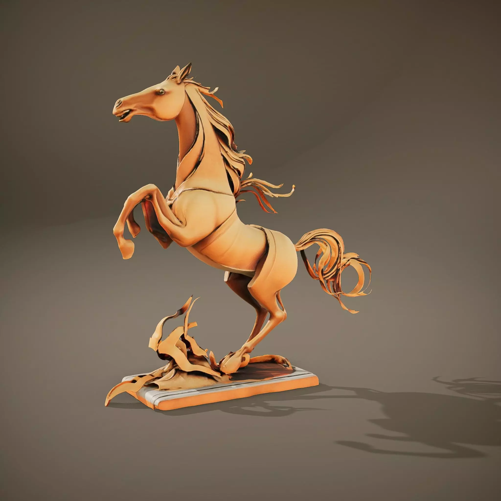 This Rustic Bronze Horse model is a meticulously crafted sculpture that captures the elegance and power of a rearing horse in a rustic bronze finish. Each model has 3 levels of detail: low-poly (1000 triangles for mobile), middle-poly (10,000 triangles for environment), and high-poly (100,000 triangles), which allows for the use of this model in production rendering (such as 3ds Max, Maya, Cinema 4D, Blender, V-Ray/Corona/Cycles and all others), game engines (Unity and Unreal compatible), and interactive presentations, providing a choice of detail based on the LOD System principle. Ideal for use in art installations, architectural visualizations, and digital exhibitions, this model's textures include PBR, diffuse, normal map, and reflection/roughness/metallic, making it suitable for any modern rendering engine. All components are accurately unwrapped with no overlapping UVs. All textures are 4096x4096 in size. Please like and leave a comment if you enjoyed this model.
