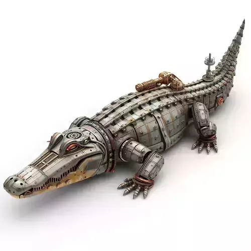 Tagssteampunk, crocodile, mechanical, automaton, robot, armored, industrial, gears, steam-powered, predator, reptile, sci-fi, fantasy, game asset, 3d model, vintage, machinery, pistons, alligator