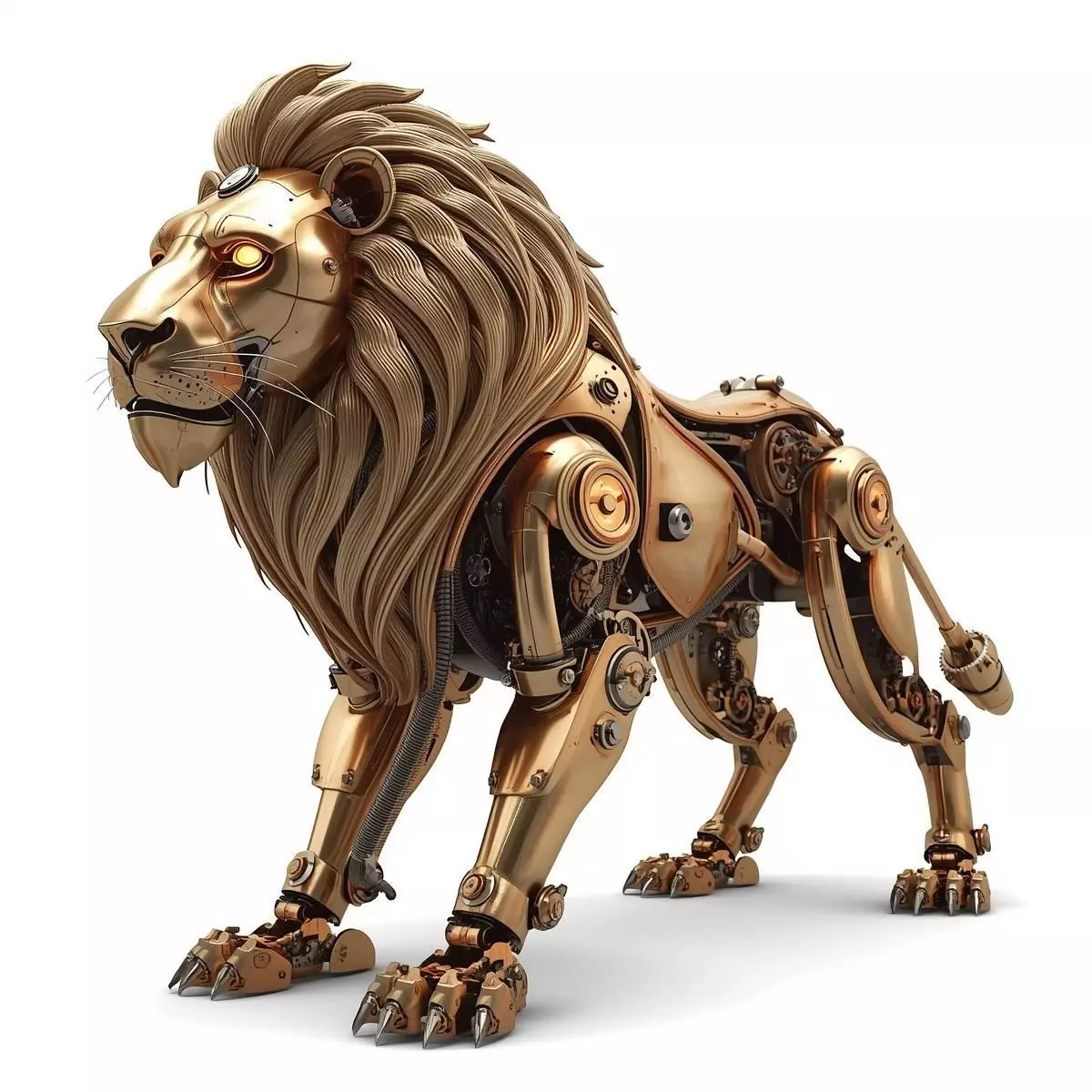 Key FeaturesRegal Industrial Design: Meticulously crafted to represent a mechanical predator, featuring a detailed metallic mane, articulated clockwork joints, and reinforced mechanical claws.