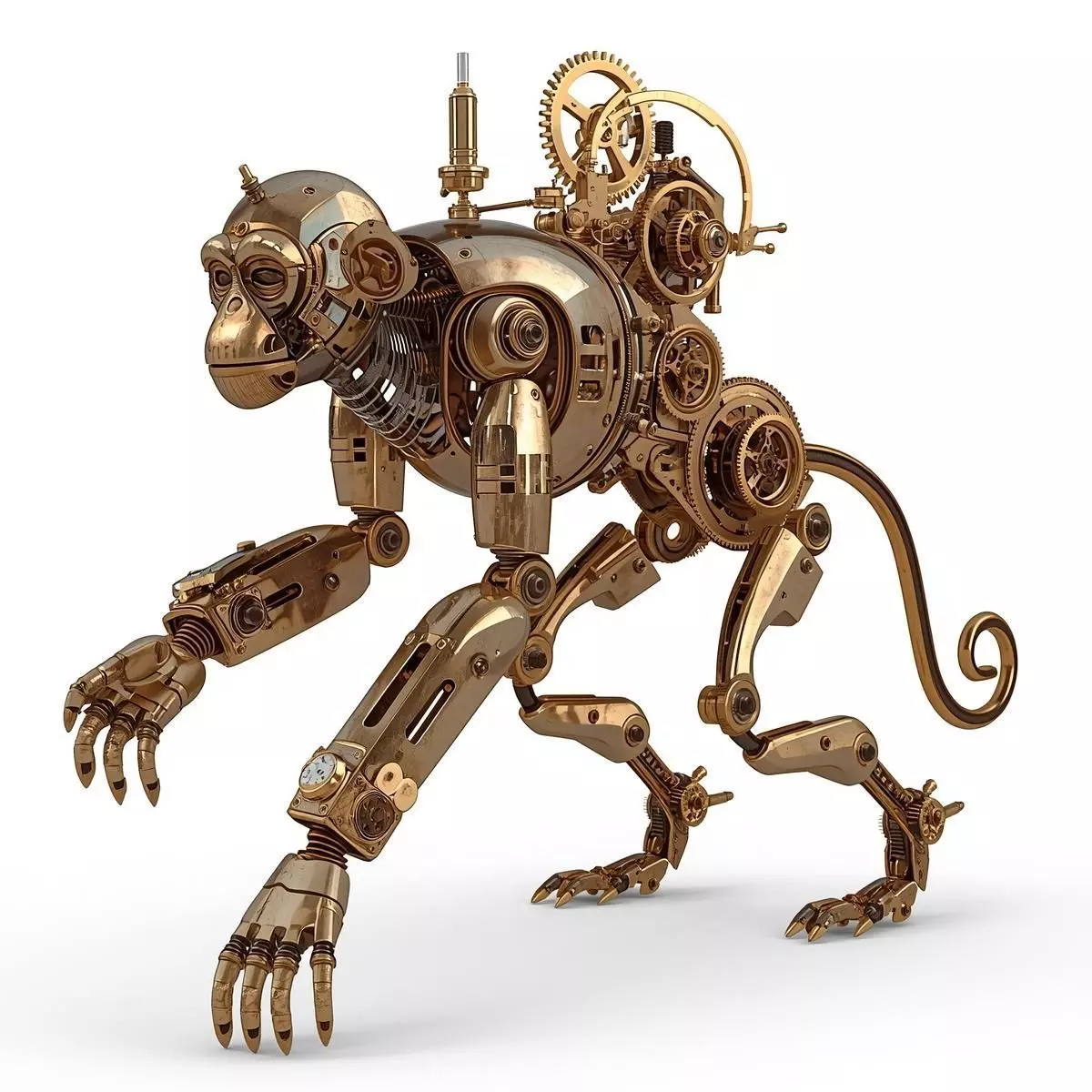 Key FeaturesAgile Industrial Design: Meticulously crafted to represent a nimble mechanical primate, featuring segmented clockwork joints, a prehensile mechanical tail, and reinforced limbs.