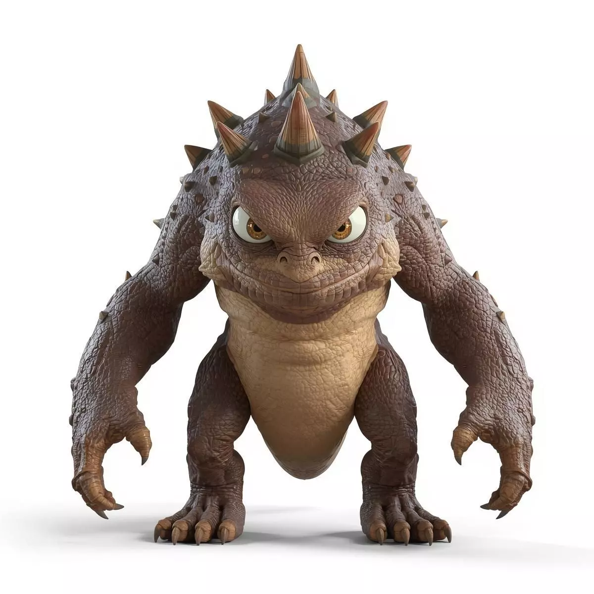 Tagscave monster, 3D character model, friendly guardian, game-ready asset, rigged character, PBR leathery skin, subterranean creature, VR/AR optimized, semi-realistic, spike-backed monster