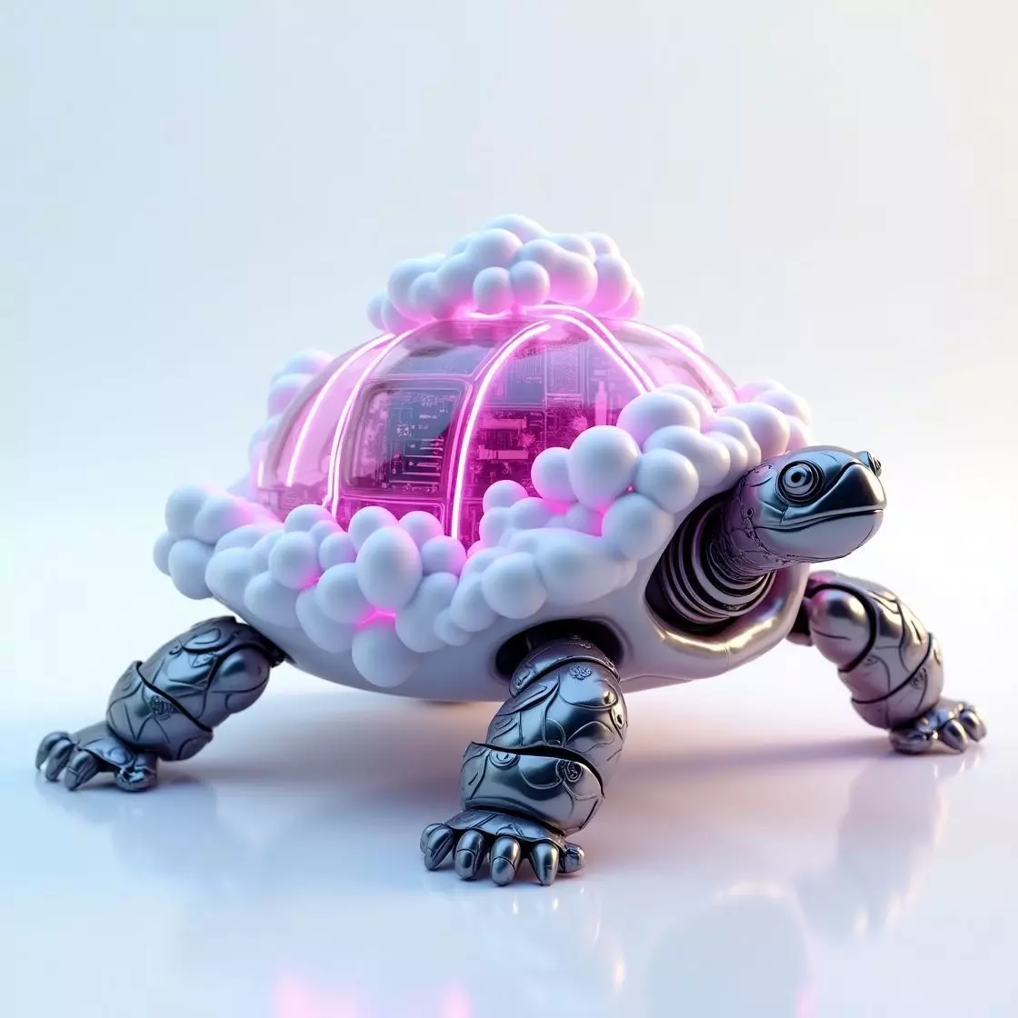 Expertly designed with exceptional attention to both technological innovation and creative symbolism, this model showcases realistic cloud textures, detailed electronic components, glowing neon effects, and authentic cyberpunk styling that brings the concept of cloud computing to life in a charming and accessible way. The unique combination of natural turtle characteristics with cutting-edge technology makes it perfect for tech presentations, cloud computing marketing, cyberpunk content, and educational materials about digital infrastructure.