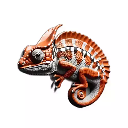 This professional-grade 3D model depicts a highly detailed and exquisitely textured exotic chameleon, specifically inspired by the striking features of a Veiled Chameleon. The model boasts intricate scale patterns and vibrant orange, white, and black coloration, bringing a unique blend of realism and artistic stylization to any project. Its meticulously crafted geometry and clean topology ensure optimal performance and stunning visual fidelity across various applications.