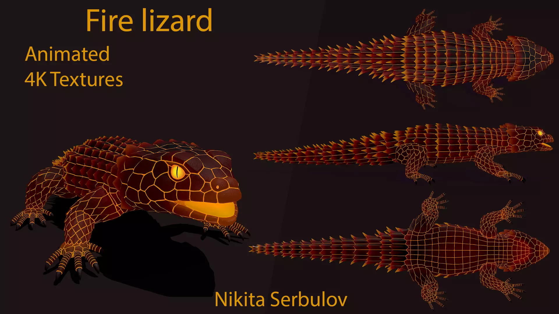 Fire Armadillo lizard Low-poly 3D model