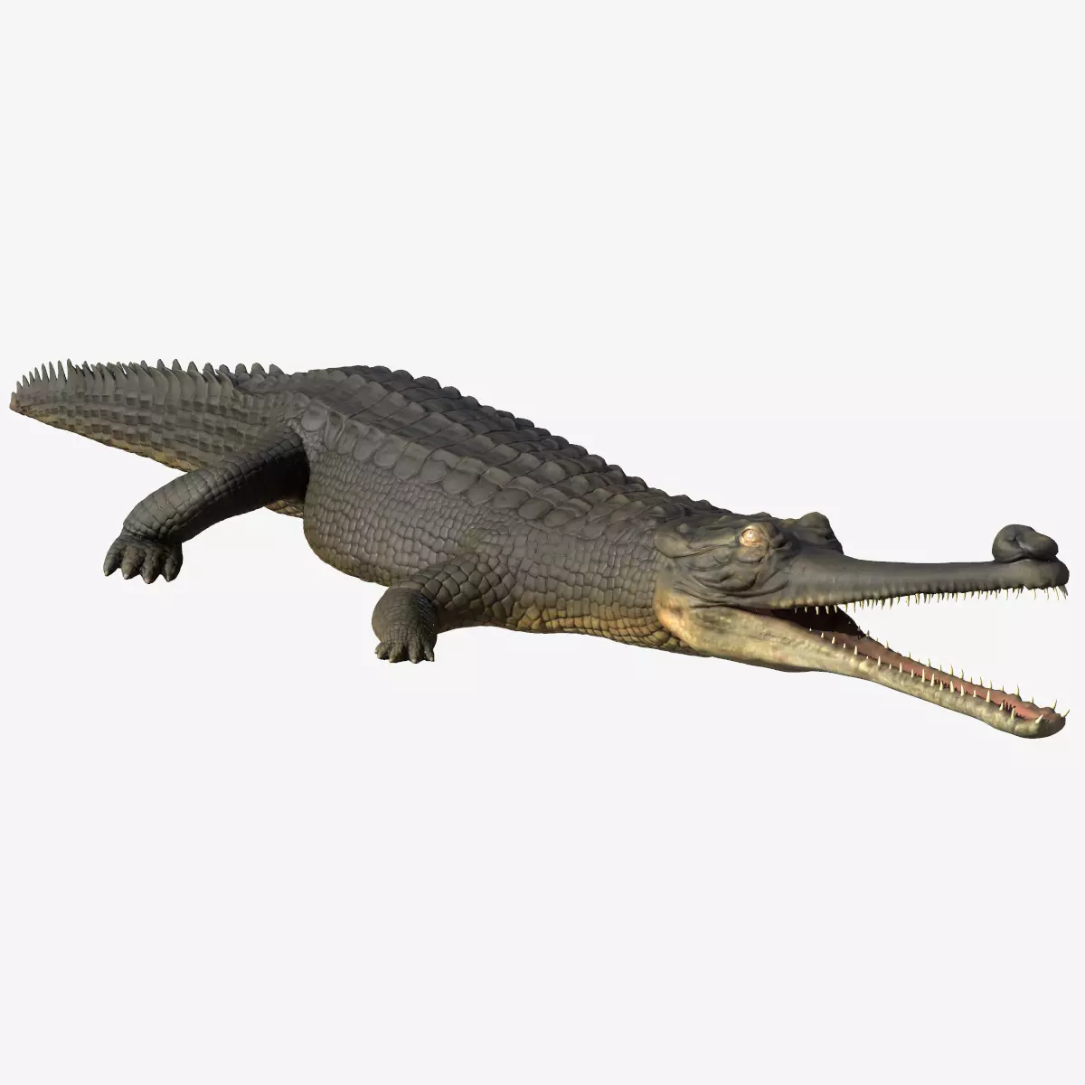 An Indian Gharial crocodile model with textures.