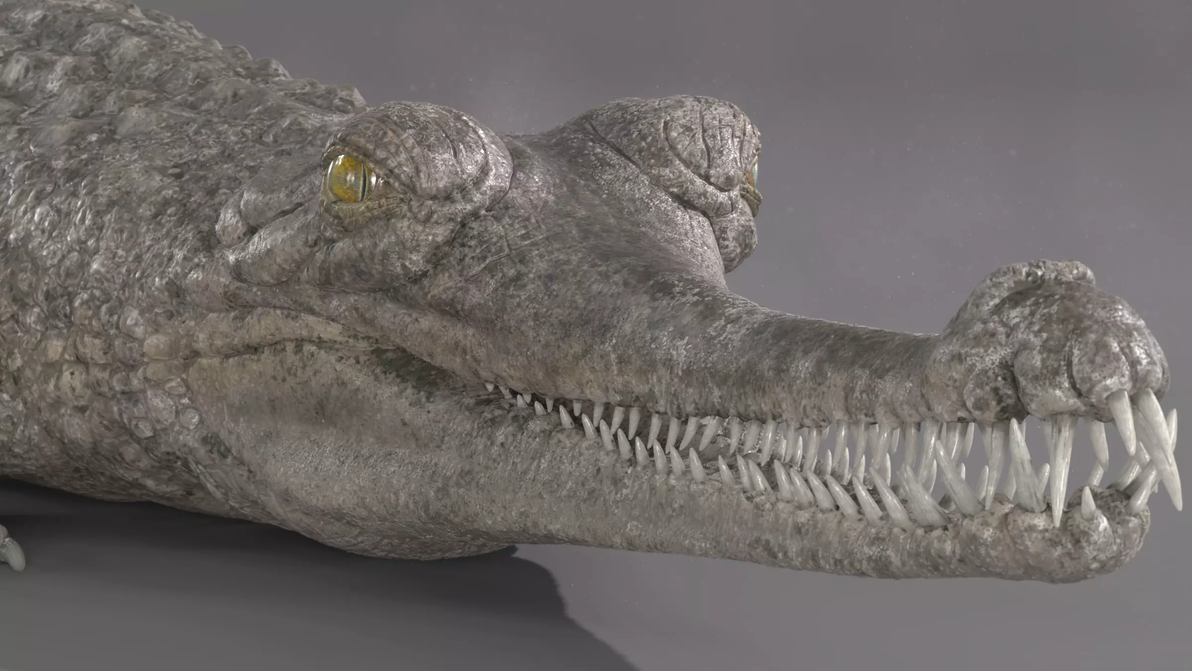 It’s a photoreal model of the Gharial Crocodile I modelled and sculpted in Zbrush, textured in Mari.The model has 21 Udim 4 K texturesRoughness bump normals Displace layered Arnold shader.