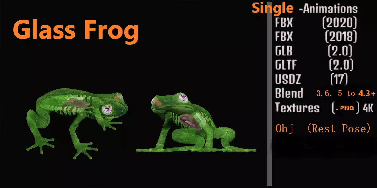 The glass frogs belong to the amphibian family Centrolenidae, native to the Central American and Columbian rainforests. The general background coloration of most glass frogs is primarily lime green, the abdominal skin of some members of this family is transparent and translucent, giving the glass frog its common name..3D glass frogs Animal Model By Nyilonelycompany (nyc).