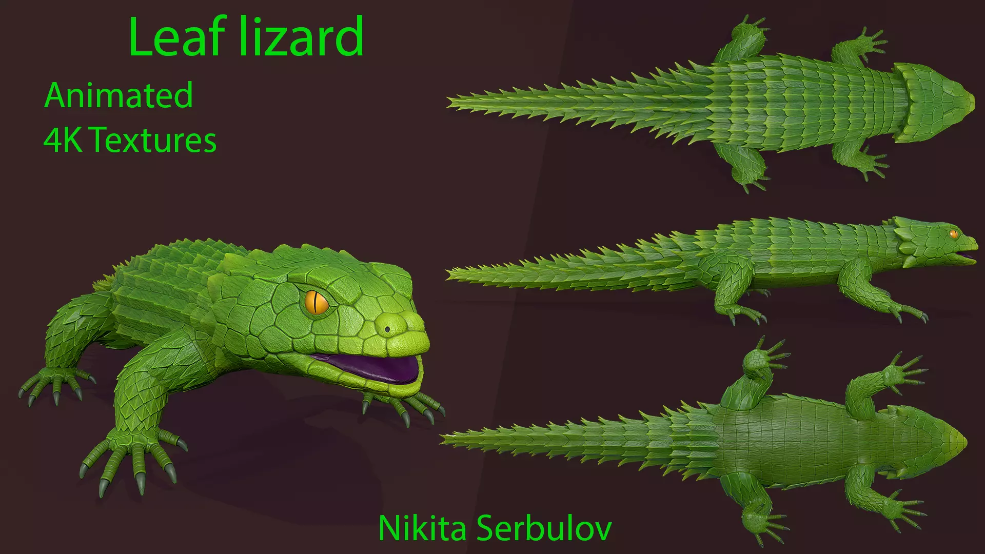 Leaf Armadillo lizard Low-poly 3D model