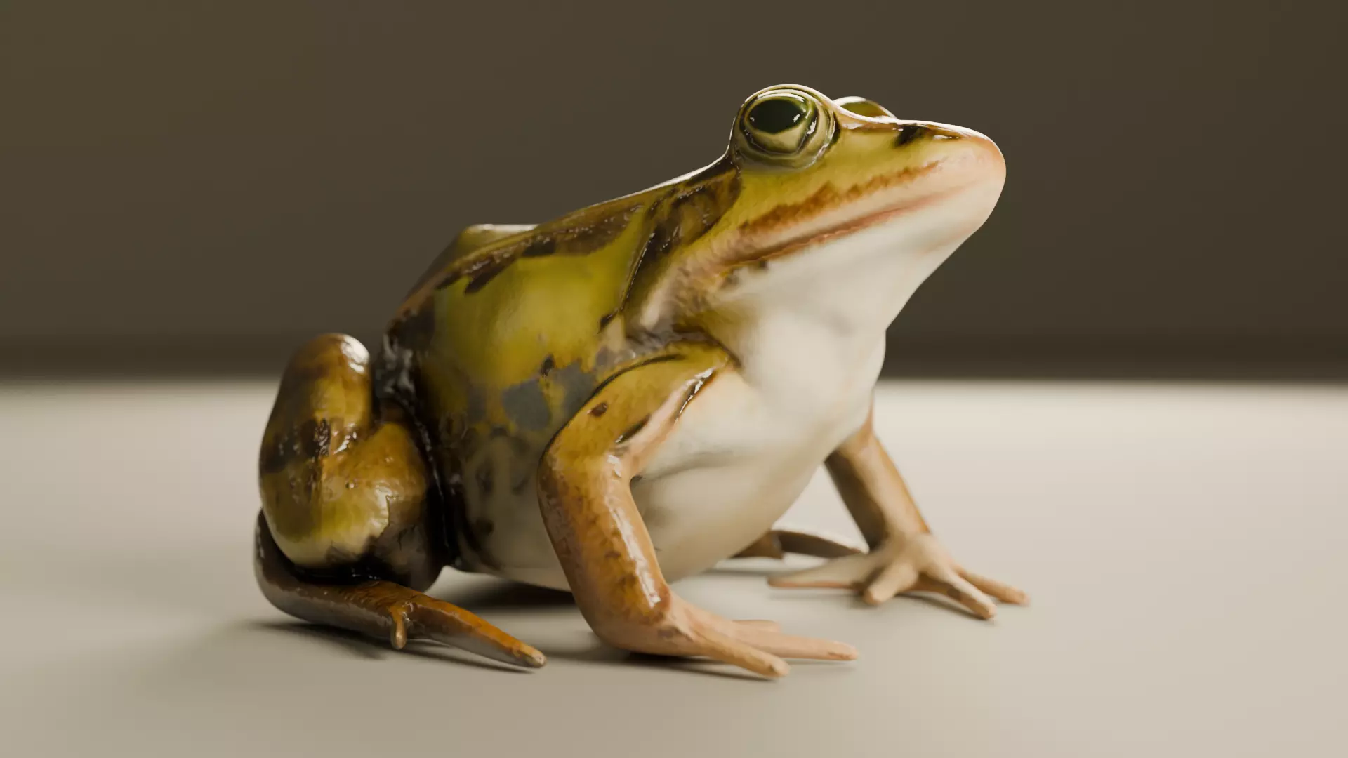 Realistic low-poly frog 3D model with 4,785 vertices and 9,556 tris, game-ready and fully PBR textured using 4K maps (Base Color, Normal, Roughness, Metallic, AO). Retopologized in Maya, baked and textured in Substance Painter, rendered in Marmoset Toolbag. Clean UVs, perfect for real-time use in games, VR/AR, cinematics, and animation. Comes in .FBX, .OBJ, and optional .BLEND formats with all textures included. Not rigged or animated, posed in a neutral stance, optimized for high performance with realistic detail.