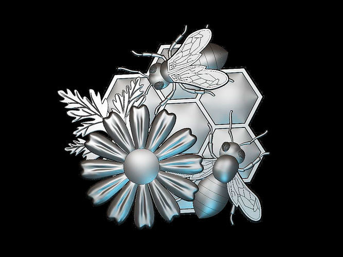 Relief Bees honey flowers-3D model for CNC and 3d printing.