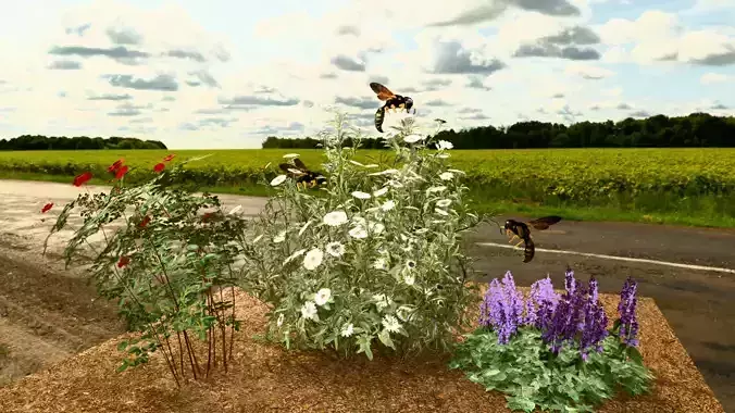 File formats included: .blend, .fbx, .obj, .usd, .stl – fully rigged and animated.**This high-quality 3D asset pack features a stylized hornet (wasp) fully rigged and animated in a flying loop, along with a beautiful variety of detailed flowers and bushes. All assets are optimized for real-time engines and are perfect for game environments, VR experiences, simulations, and animation scenes.Whether you're creating a garden simulation, an educational bee project, or a stylized environment, this asset pack provides a clean and ready-to-use setup with PBR materials and exportable formats.**Included:1 Animated & Rigged Wasp with clean armature and loop-ready animation3 Types of stylized flowers (roses, daisies, lavenders)Ground base for natural scene integrationOptimized for Unity, Unreal Engine, BlenderTextured and UV unwrappedExported in: .blend, .fbx, .obj, .usd, .stl