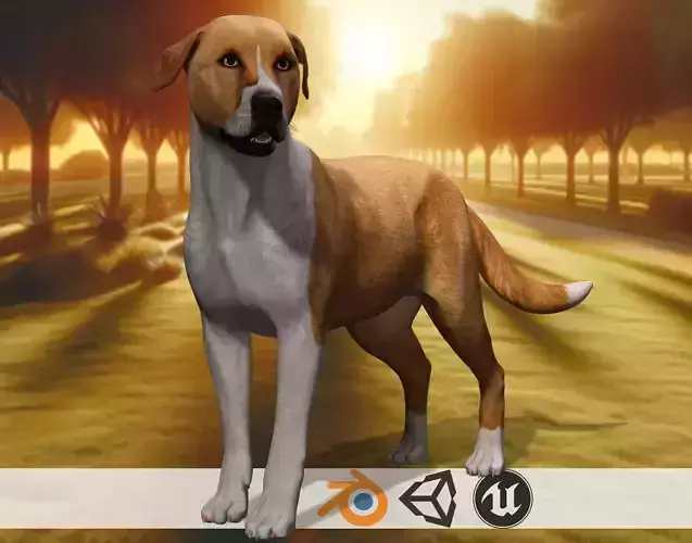 Optimized for Mobile and VR: This dog model combines high-quality visuals with performance optimization for seamless integration into mobile and VR experiences.True-to-Life Detailing: From the texture of the fur to the playful gleam in its eyes, every detail is crafted to mirror a real dog's charm.Fully Rigged and Animated: With a complete rigging system, this model is poised for realistic animations that capture a dog's movement and personality.