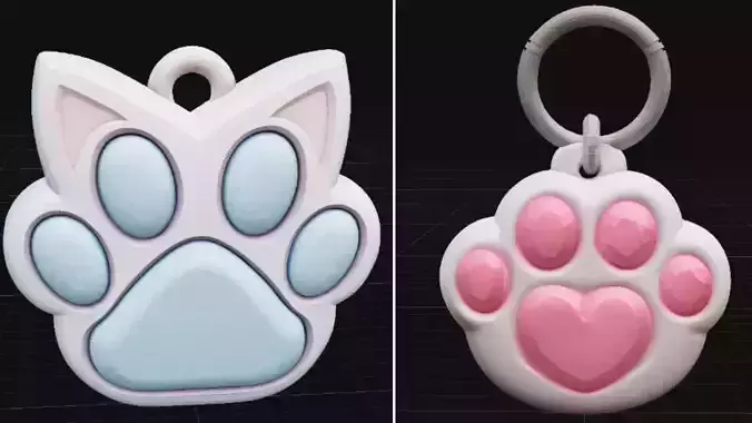 Cat Paw Keychain Two Model Pack Model 3D Print Low-poly 3D model