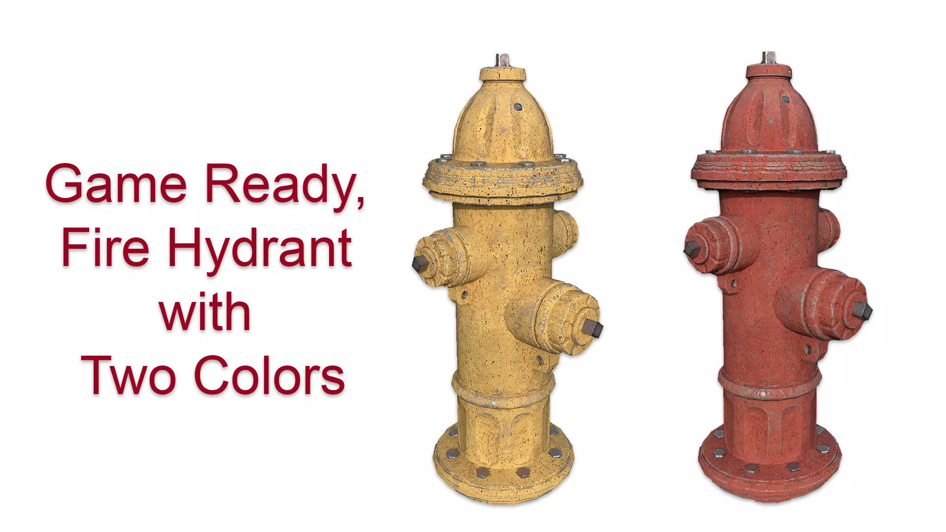 This product contains a game ready low poly fire hydrant. It has two different colors of PBR texture..