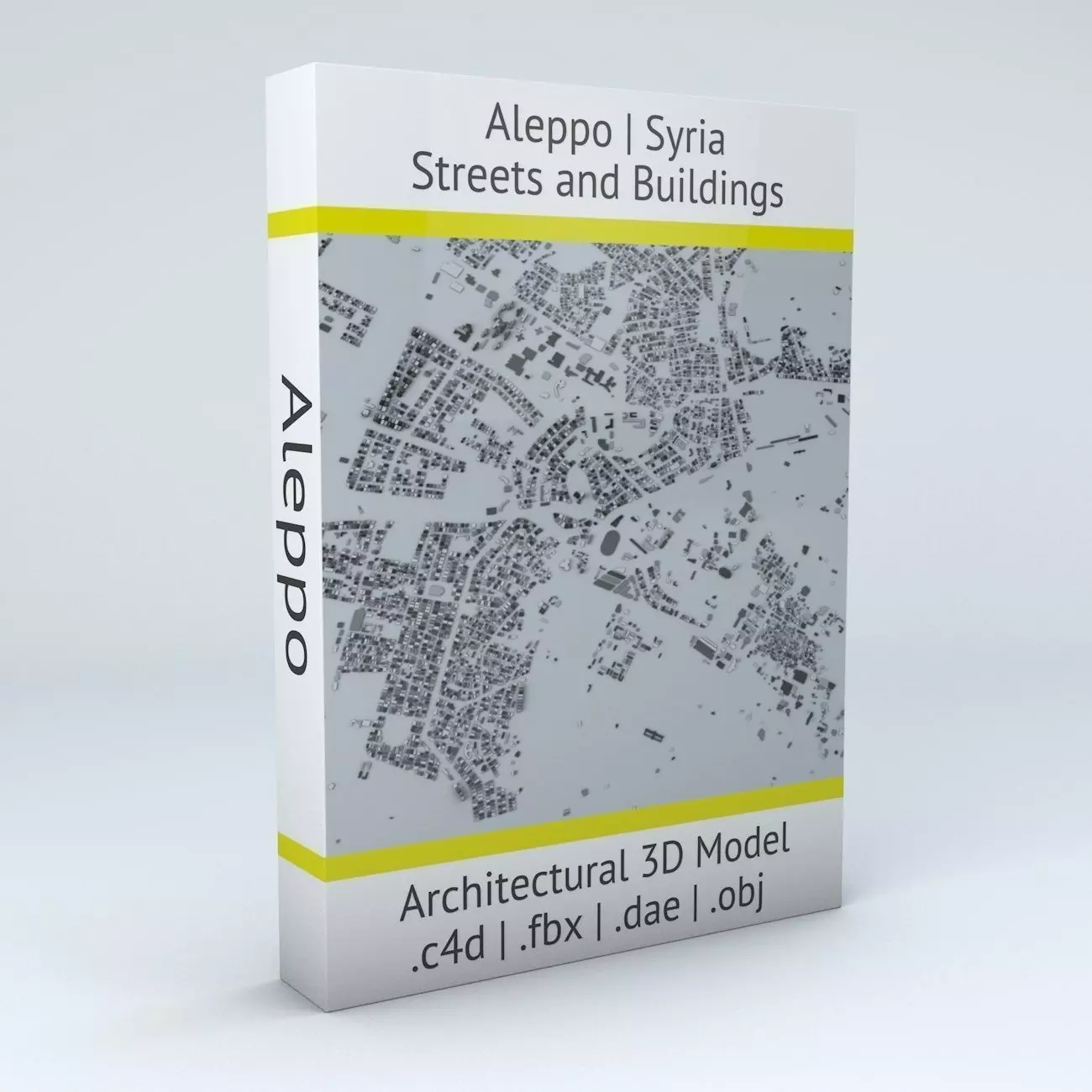 - this model is based on real data therefore this is a realistic buildings and streets setup of Aleppo, Syria- 5 building groups are setup so that you can add variety to buildings (color materials and/or textures) Groups can be turned off/on- UV mapped with overlapping UVs- the model is positioned on a flat surface (all buildings are on the “floor” - no elevation data included)- geometry is polygonal quads and tris- model is untextured and renders fast- this 3D model is/can be licensed (commercial use is fine) under Creative Commons Attribution-ShareALike 2.0 (CC-BY-SA) license- buildings and streets data from OpenStreetMap / www.openstreetmap.org