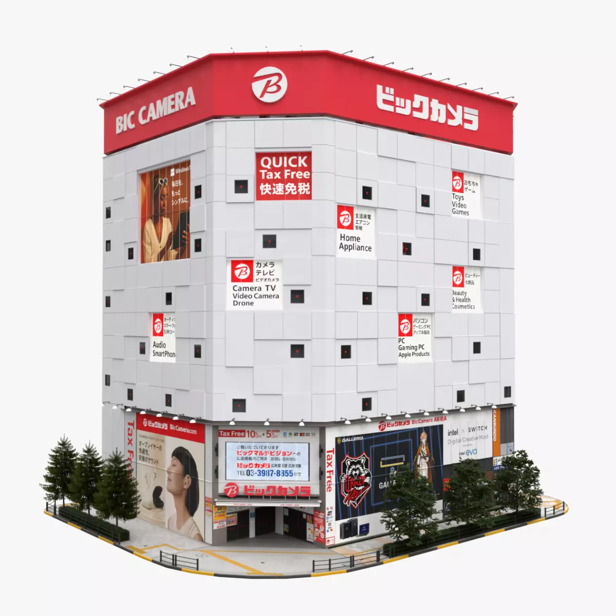 Realistic 3D model of the Bic Camera Akihabara store, located in Tokyo, Japan. Ideal for use in urban environments, cityscapes, architectural visualizations, and game development. Built in Blender, this asset is clean, fully textured, and easy to drop into your scene.