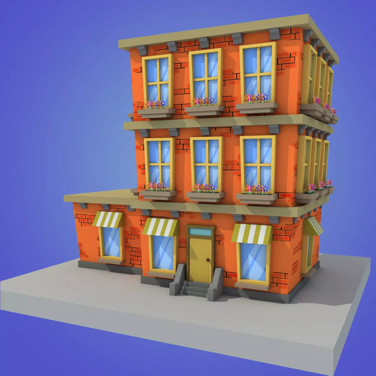 cartoon building low poly Low-poly 3D model