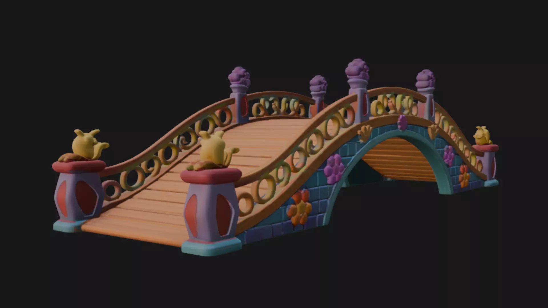bridge garden-bridge small-bridge wooden-bridge village-bridge realistic-bridge cartoon-bridge pixar-style curve curve-bridge