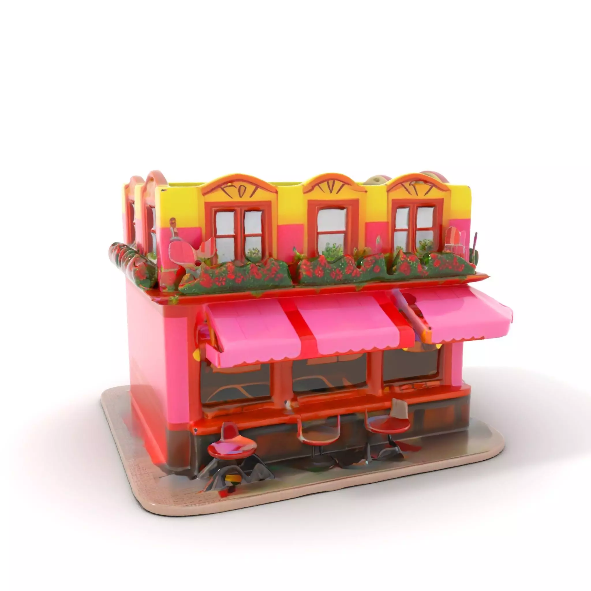 The Charming Pink Café model pack offers a delightful, vibrant building that can be used in urban scenes, animation, or interactive presentations. With its bright colors and detailed exterior, this model is perfect for creating lively street environments or cozy scenes in animations. Each model has 3 levels of detail: low-poly (1000 triangles for mobile), middle-poly (10,000 triangles for environment), and high-poly (100,000 triangles), allowing for use in production rendering such as 3ds max, Maya, Cinema4D, Blender, Vray/Corona/Cycles and all others, plus compatibility with game engines like Unity and Unreal Engine.