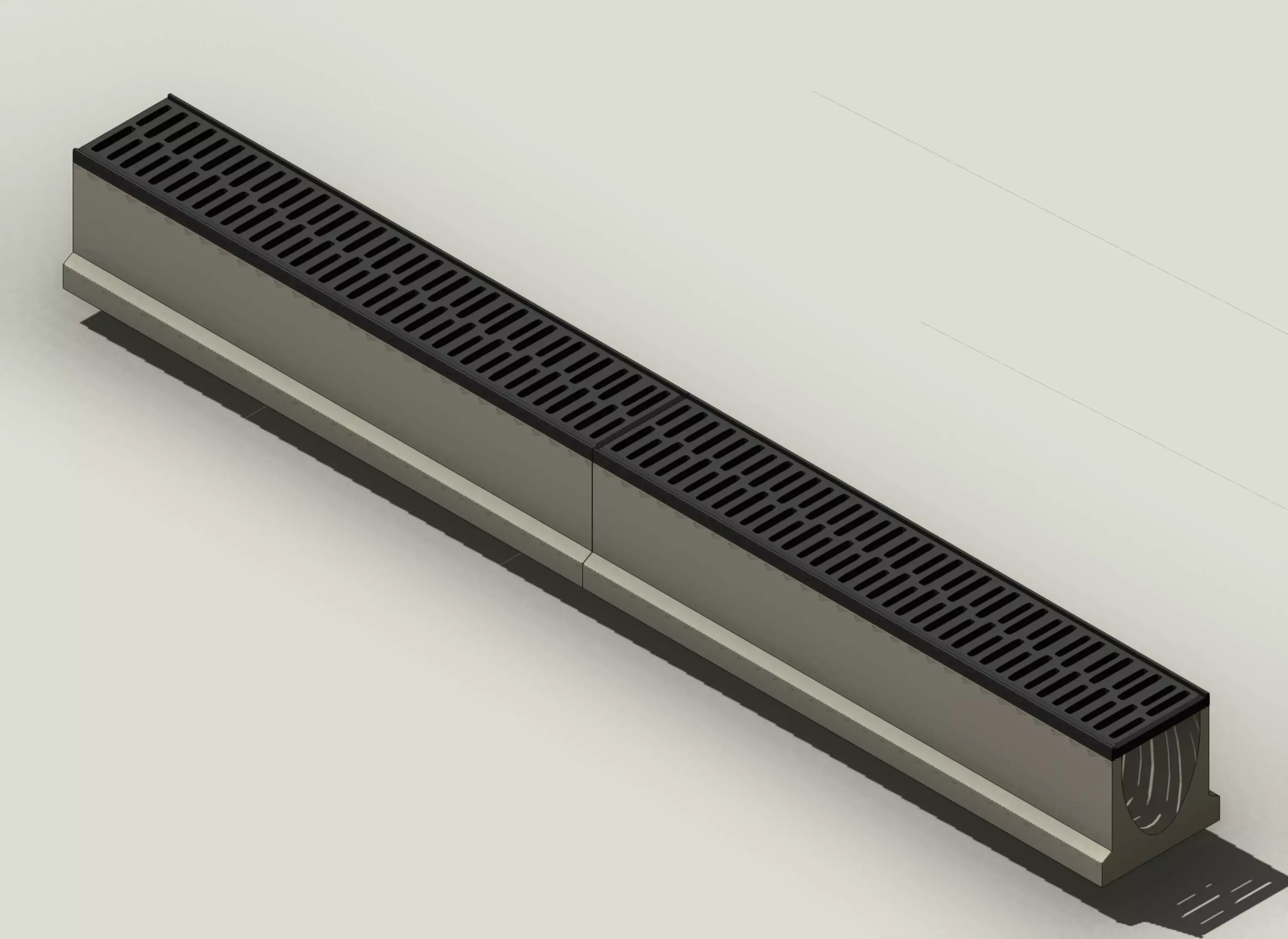 This model represents a realistic precast concrete drainage channel with integrated steel edge protection and removable slotted grate cover.