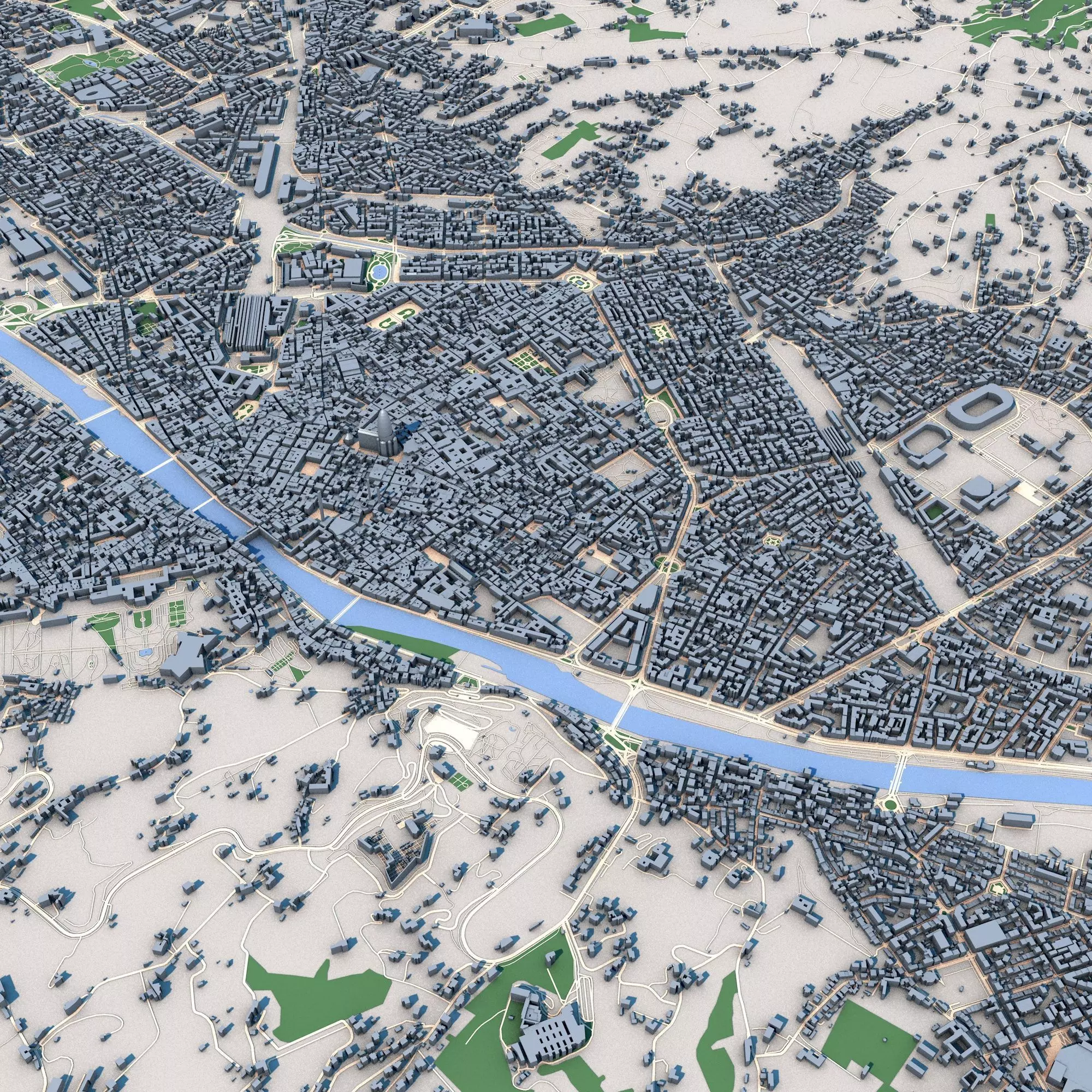 The model has material settings that define how surfaces look (color, shine, transparency, etc.).
