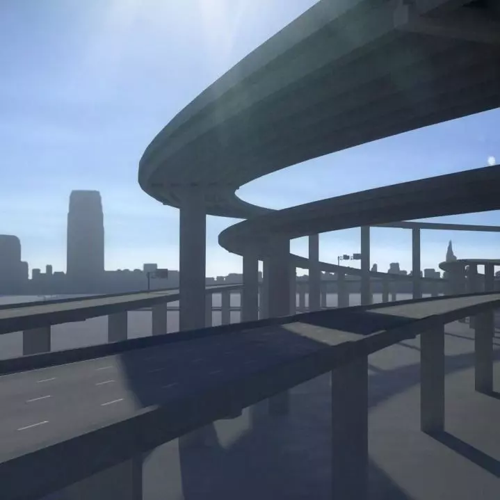 A 3D Freeway with a sun light and 4k HDRI environment with built in glow lighting in the scene. This scene is Rendered with Mental Ray and has assigned shaders with textures.